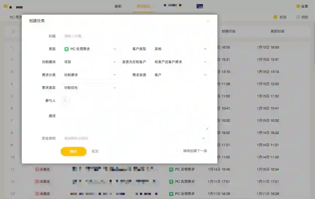 对于2B的产品需求,信息无非是角色、场景、原因、目的、预期这几点。但由于不同企业的角色、场景等信息复杂多样,所以无法形成统一的标准化数据来源,因此,我们规定以任务标题来描述需求最终的预期,其他必要信息通过任务描述来进一步补充;