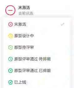 所以在正式的产品Backlog中的需求分为7个状态:未激活、方案设计中、方案待评审、评审通过待排期、已排期、已上线、关闭;