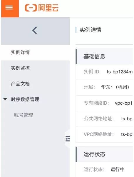 然后在控制台中,选择“时序时空数据库->实例详情”配置网络连接参数