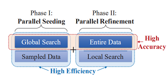 经过Phase 1的步骤,已经得到了一个近似的聚类中心集合,但是Phase 1中的中心集合是从sampled data中得到的,因此可能与真实的中心还存在一定的偏差,第二阶段就是为了对第一阶段生成的中心集合进行微调