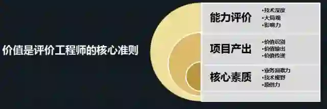 我认为一个技术人员或者专家、工程师最重要的核心素质是业务洞察力、技术视野和原创力,业务洞察力是指技术人员对价值点的识别,技术视野和原创力可以体现在价值输出,就是做出多少东西,解决了多少问题,最终解决方案有没有可借鉴性,有没有可以传递的价值。这三点最后就就转化为技术深度、大局观、影响力,串联起来就是我们最终对一个专家工程师的定义。下面举几个例子,来阐述一个优秀的专家工程师是什么样的。