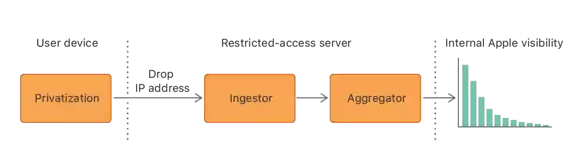 在数据接入之前,加密记录会删除掉IP地址,然后数据库收集所有用户数据后进行批量处理。这一过程将删除元数据,例如记录发生的时间,并且根据记录情况把它们分类。在将结果输入到下一阶段前,数据库也会随机对每个用户行为记录进行排序。