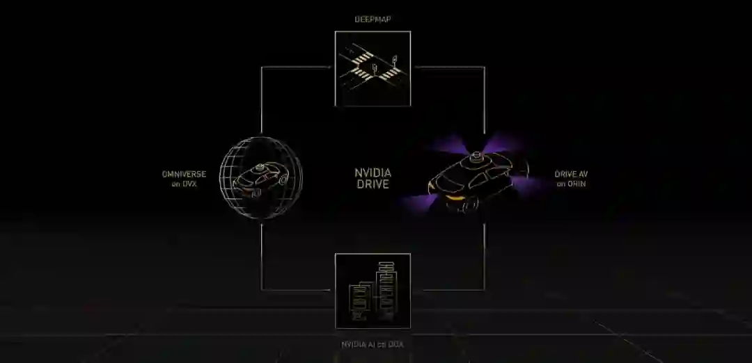 DRIVE 自动驾驶汽车系统本质上是「AI 司机」。与其他平台一样,NVIDIA DRIVE 是全栈式端到端平台,对开发者开放,他们可以使用整个平台或者其中一部分。在运行过程中,英伟达使用 DeepMap 高清地图等收集和生成真值数据,使用 DGX 上的 NVIDIA AI 来训练 AI 模型。Omniverse 中的 DRIVE Sim 在 OVX 上运行,它属于数字孪生。DRIVE AV 是一款运行在车载 Orin 计算平台上的自动驾驶应用。
