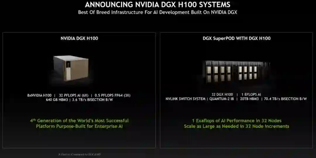 英伟达计划在今年三季度推出配备 H100 的系统,包括 DGX、DGX SuperPod 服务器,以及来自 OEM 合作伙伴使用 HGX 基板和 PCIe 卡服务器。