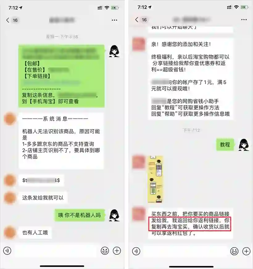 还有的淘宝客会把个人号或者微信公众号,变成发放优惠信息的机器人,再配合人工做好进一步的运营。