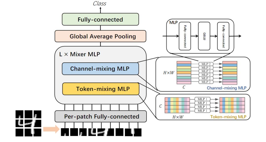 研究人员只需要在patch上简单地堆叠一些全连接层就可以在ImageNet上得到只比CNN和ViT弱一点点的模型。这种纯粹的MLP架构模型不仅保留了全局感知的能力,还引入了一些归纳偏差(inductive bias)。
