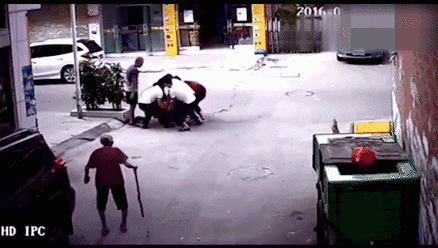 而此时远处一辆车开过来,女人抱着孩子就上车了,其他人继续控制着爸爸。