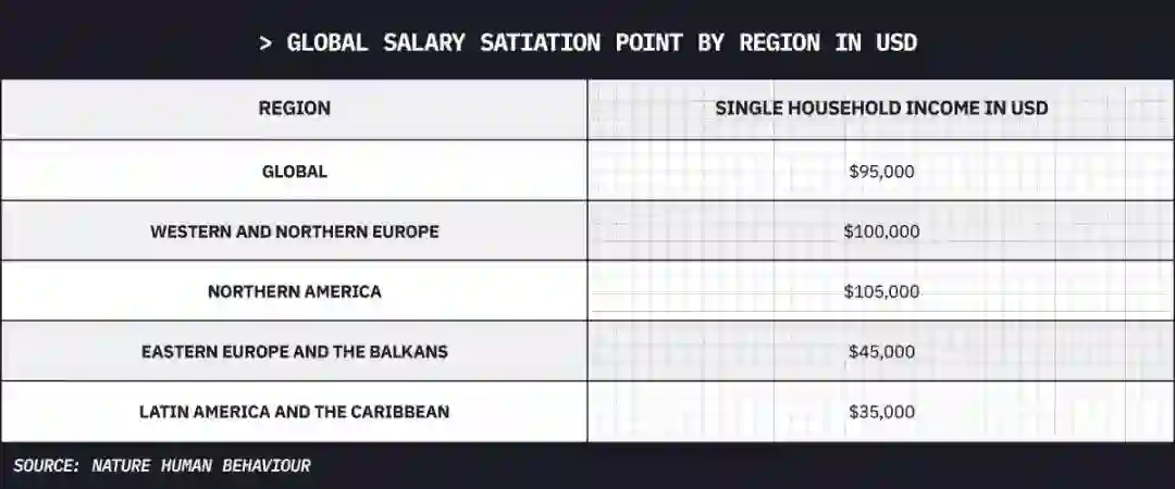 最近的研究指出,95,000美元是不再增加我们幸福感的确切工资数字。研究人员认为,并不是高收入本身导致幸福感下降,而是高薪往往伴随着更高的工作需求、增加的物质需求,以及更重要的社会比较。