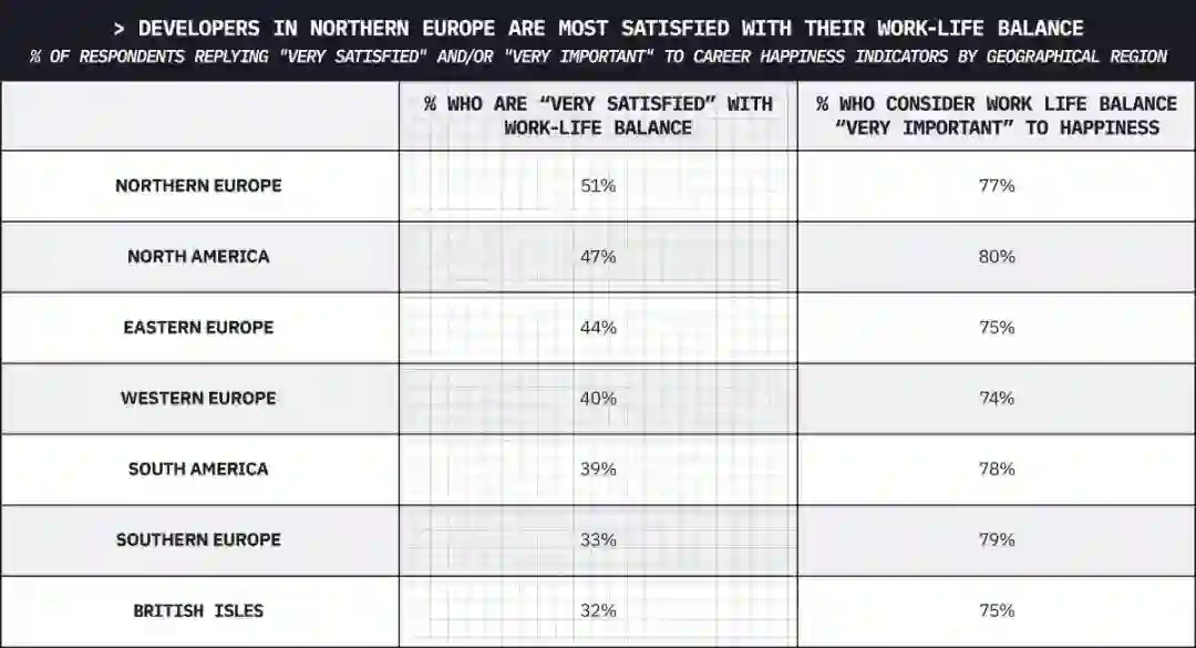 北欧的开发人员对他们的工作与生活平衡最为满意——他们的工作时间也最短。