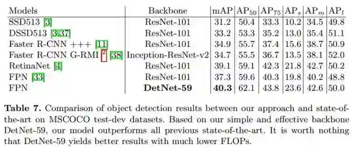 可以看出来,DetNet还是取得了很不错的效果,而且实现简单,只要简单地更改特征抽取网络的代码,不需要太多的技巧,有兴趣的同学不妨进行尝试~