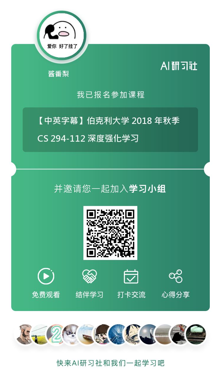 AI 研习社获得官方授权,汉化翻译伯克利大学 CS 294-112 《深度强化学习》,今天正式上线中英双语字幕版课程啦!