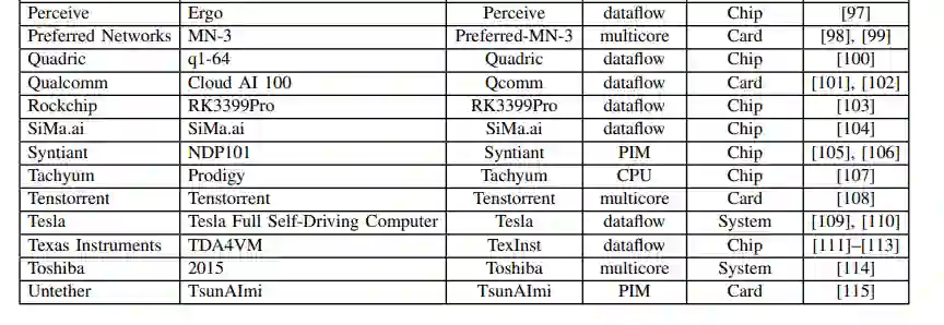 本文更新了近三年来人工智能加速器和处理器的研究进展,收集和总结了目前已公开公布的具有峰值性能和功耗数字的商用加速器。