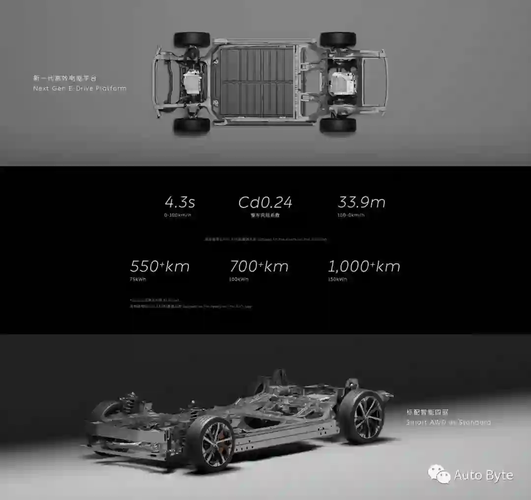 全系标配双电机,先期提供2款电池包