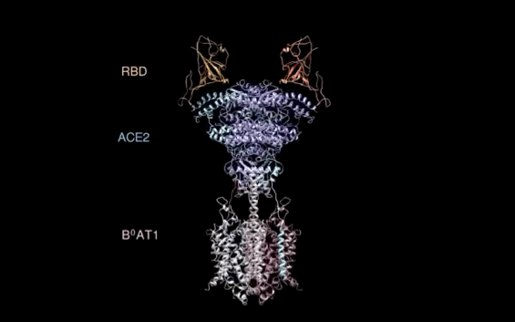 RBD-ACE2-B0AT1 复合物结构图
