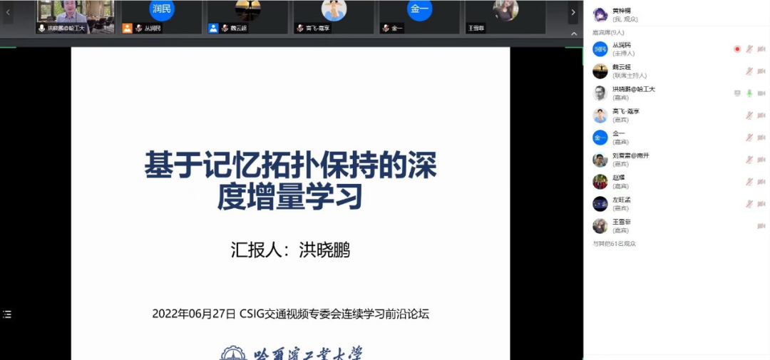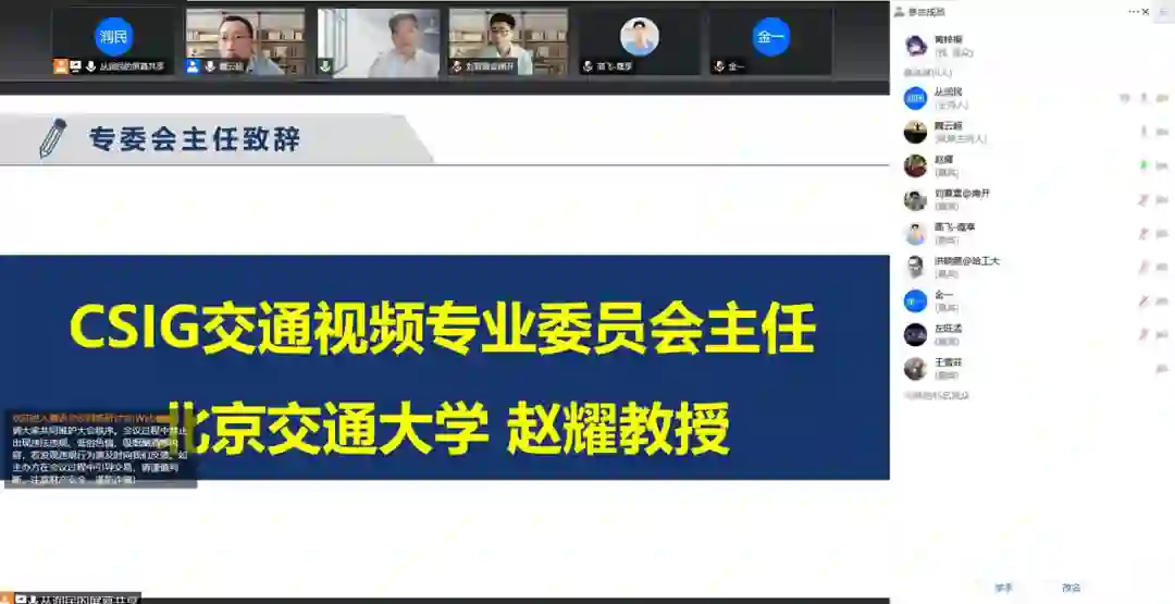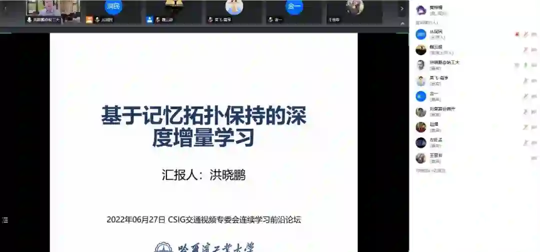 2022年6月27日下午,CSIG交通视频专委会连续学习前沿论坛通过线上会议的方式顺利召开,本次活动由中国图象图形学学会主办,CSIG交通视频专业委员会和哈尔滨工业大学承办,并分别在三个平台进行了在线直播(腾讯会议、CSIG视频号和蔻享学术)。