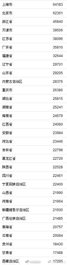 【2018年31省居民收入榜,京沪人均可支配收入首超6万元】