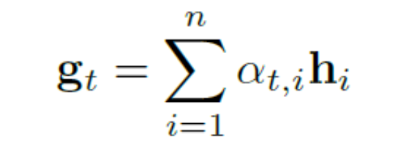 注意权值有效地表示编码器输出的每一项的重要性。解码器以权值为系数,将H的列线性组合成向量,称为glimpse: