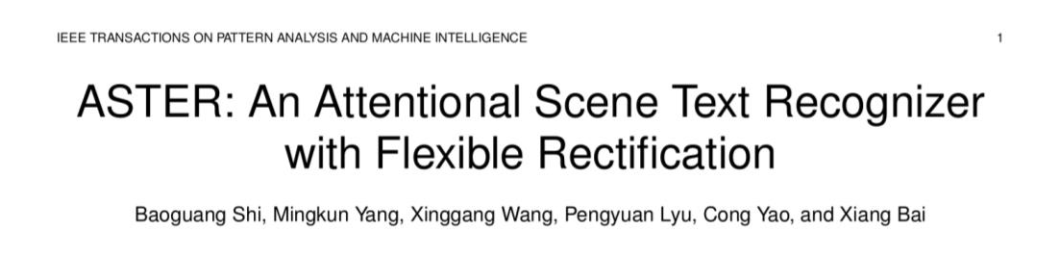[4]Baoguang S , Mingkun Y , Xinggang W , et al.ASTER:An Attentional Scene Text Recognizer with Flexible Rectification[J]. IEEE Transactions on Pattern Analysis and Machine Intelligence, 2018:1-1.