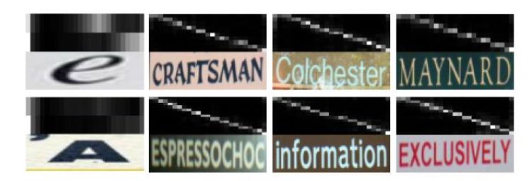 为了了解解码器的行为,作者提取了attention权值。即将它们可视化到图所示的几个例子中。在每个图像之上,一个attention权重矩阵在2维特征图中被可视化。映射的第t行对应于第t解码步骤的注意权重。除了非常短的单词,我们可以观察到注意力权重和字符之间的清晰对齐。这说明了该识别网络的隐式字符识别能力。