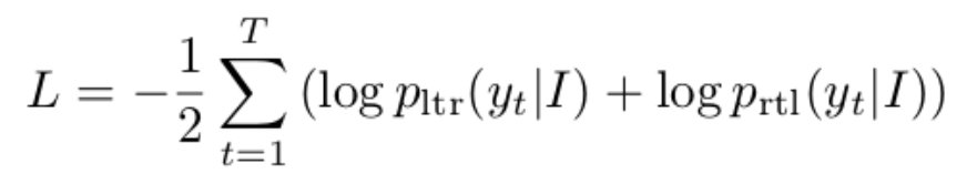 其中y1..yt为文本序列的groundtruth,目标函数是两个方向解码器的平均值。