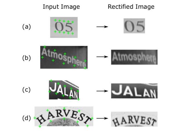 它提出了显式图像矫正机制,可以在无额外标注的情况下显著地提升识别网络的识别效果。对空间透视、弯曲等不规则文本具有较好的识别效果。