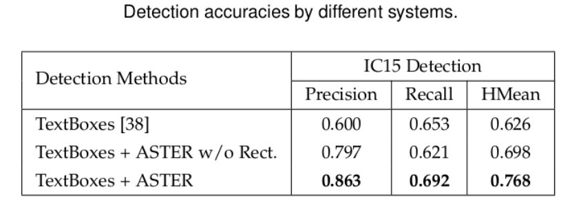 实验结果证明:ASTER对于文本检测具有很好的指导意义,在端到端文本识别中的优势非常明显。