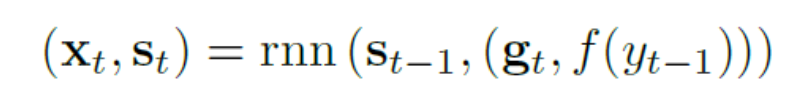 注意序列对序列模型是一个单向递归网络。它对T步迭代工作,产生长度为T的符号序列,表示为(y1,...,yT)。