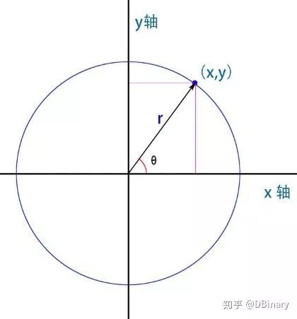 来表示这个正弦函数,而 则表示某一弧度,如果你把这个三角形画在一个二维坐标系的圆上面,比如下面的这种形式
