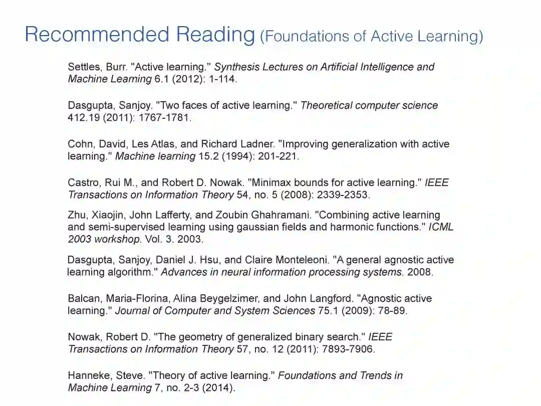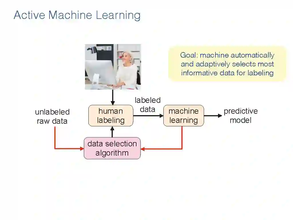 近年来,机器学习领域有了很大的进步,但主要是在定义明确的领域中,使用大量带有人类标签的训练数据。机器可以识别图像中的物体并翻译文本,但它们必须接受比人一生所能看到的更多的图像和文本的训练。生成必要的训练数据集可能需要大量的人力工作。Active ML旨在通过设计学习算法来解决这一问题,该算法能够自动自适应地选择信息最丰富的数据进行标记,这样人类的时间就不会浪费在标记无关、冗余或琐碎的示例上。本教程将概述一些应用,并介绍主动机器学习的基本理论和算法。将特别关注可靠的主动学习算法,并量化减少学习所需的标记训练数据。