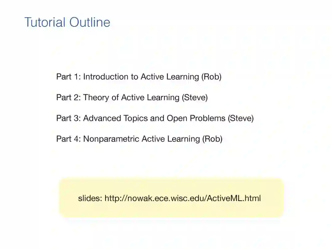 【导读】主动学习,是今年 ICML上比较热门的方向,这几年,研究者越来越关注小样本,无标记的数据如何快速标记,或者样本缺失的问题,而主动学习可以在大量无标记数据中选择最佳的数据进行标记,扩展标签的数据。在昨天的ICML2019 Tutorial环节,来自芝加哥丰田技术研究所(TTIC)的Robert Nowak 教授和威斯康辛大学麦迪逊分校(University of Wisconsin-Madison) 的Steve Hanneke跟大家交流了《主动学习:理论到实战》的当前进展。
