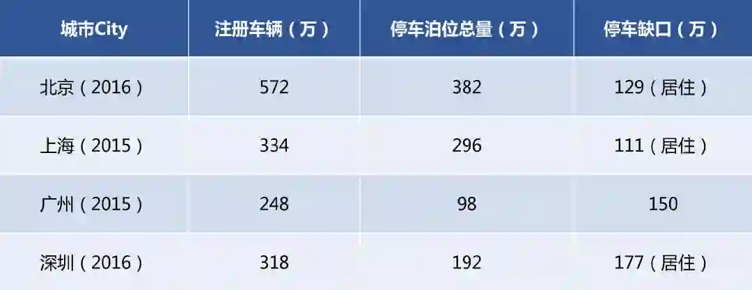 图1:北上广深四地注册车辆与停车泊位总量统计