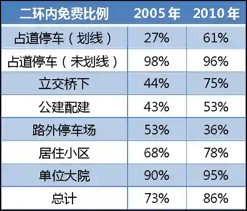 如图3,据北京交通发展研究院所做的一项统计,发现2005年北京二环内免费停车比例高达73%,2010年则上升到86%。