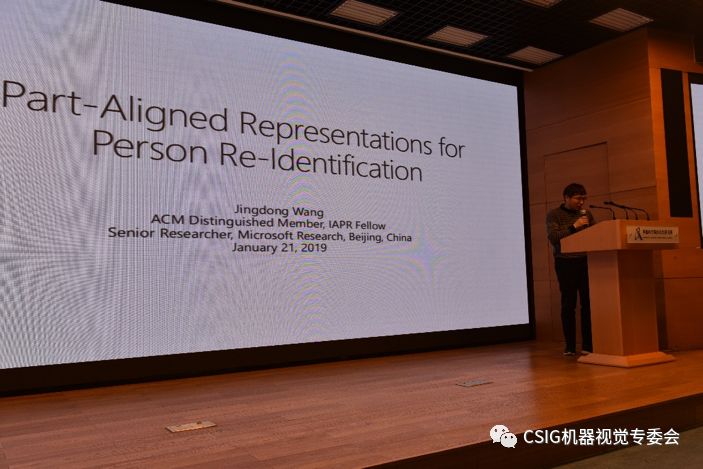 微软亚洲研究院王井东研究员在题为“Part-Aligned Representations for Person Re-Identification”中介绍了微软在行人再识别领域的数据库贡献——Market-1501和Mars,以及基于视觉注意机制的部件化鲁棒行人视觉表达技术上的新进展,行人再识别在学术界与工业界引起了广泛的关注,在视频监控、无人售货、行为分析等领域有很强的商业应用需求。