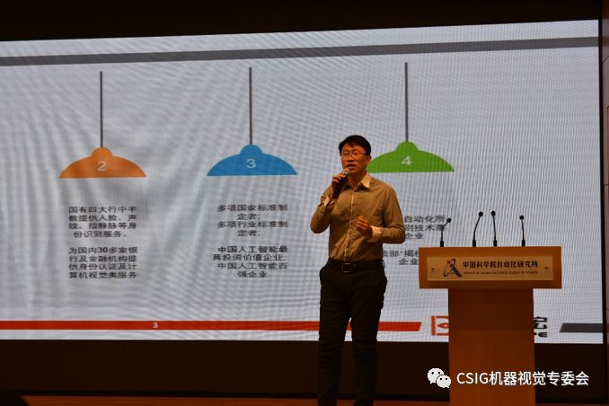 中科院人脸识别技术落地企业代表中科博宏副总吴雪盟在演讲中表示人工智能价值链尚未完整,科技企业不仅要站在技术制高点去观望市场,还要踏实深耕于市细分场领域,不断挖掘创新价值为产业科技赋能。作为国内第一批人工智能企业,从国家标准到行业定制,从核心算法到AI服务体系,中科博宏多年来服务于金融、社保等细分领域,为国有四大行中半数以及国内30多家银行及金融机构提供身份认证以及计算机视觉服务,并成功入围工信部人工智能揭榜企业。