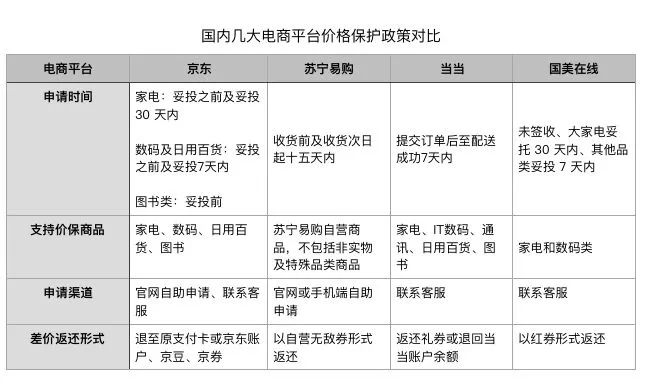 对于日常中的购买行为,除了基本的价格规范之外,则是针对部分商品强化价格保护措施,在购买之后的一段时间里(通常是15到30天),用户发现商品降价的话,可以提前价格保护,获得一定的补偿。