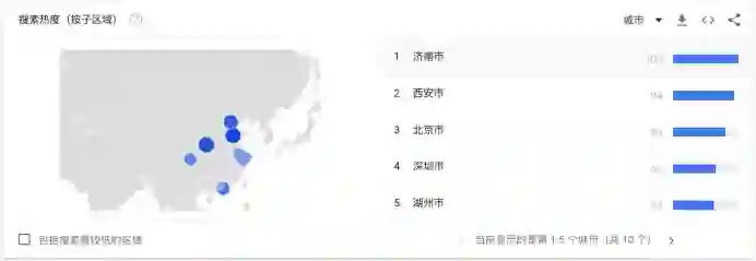 请注意,上面所展示的热度都基于的是最近 12 个月的数据。说实话,在这里排名第一和第二的济南市和西安市很出乎作者的意料。也许这两座城市之中有某些学校和公司在大力地推广 Go 语言吧。当然了,这只是猜测而已,并没有数据上的支撑。