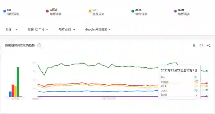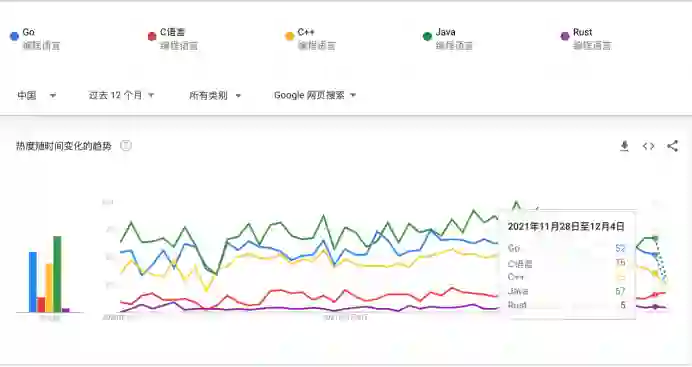 图 8 - Google Trend 之编程语言热度对比(2021 年,中国)