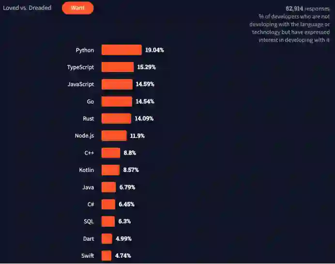 图 10 - Stack Overflow Developer Survey 2021(最想用的编程语言)