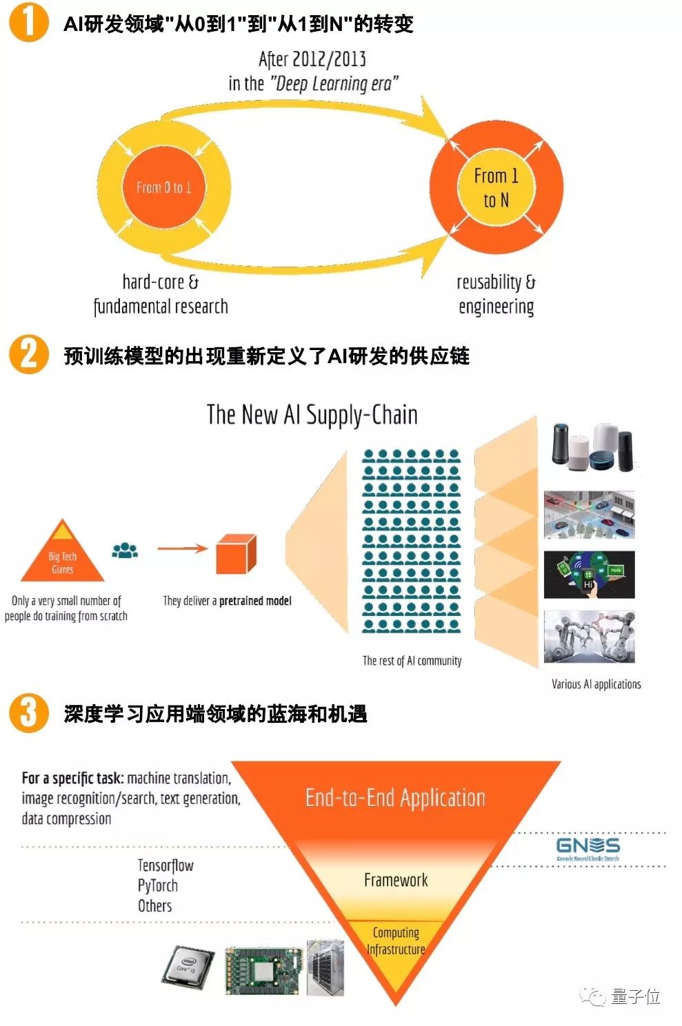 AI研发领域已经不在是2013年以前的”从0到1”硬核创新和”从1到N”的应用创新并驾齐驱。在深度学习时代,越来越多的人转而投入到”从1到N”的应用创新上。