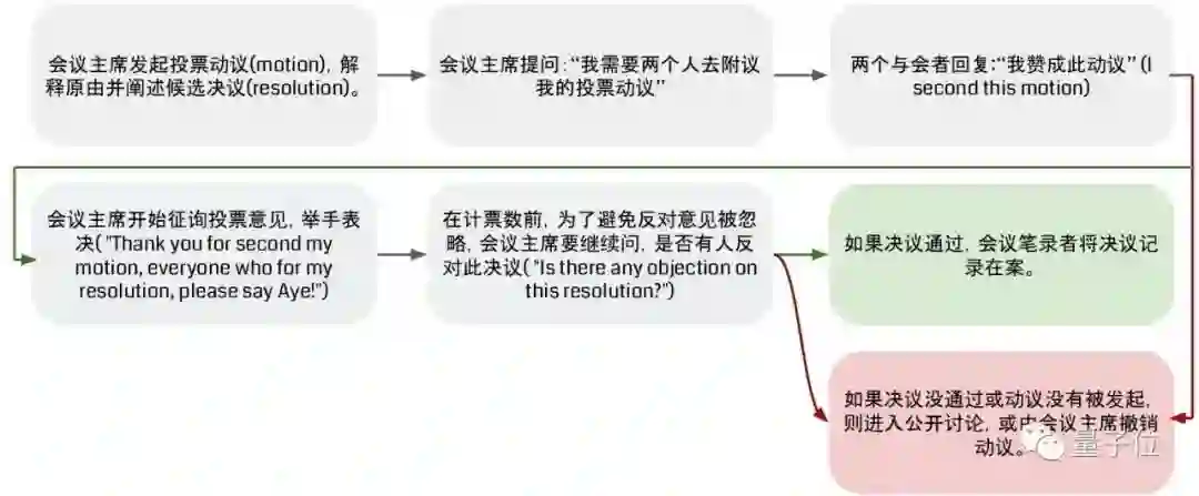 实际上,这套议事流程正是《罗伯特议事准则》(<Robert’s Rules of Order>)中的一部分,对于欧美西方国家的人来说可能在高中就已经学过并早已熟记于心,对于中国人来说相对比较陌生。