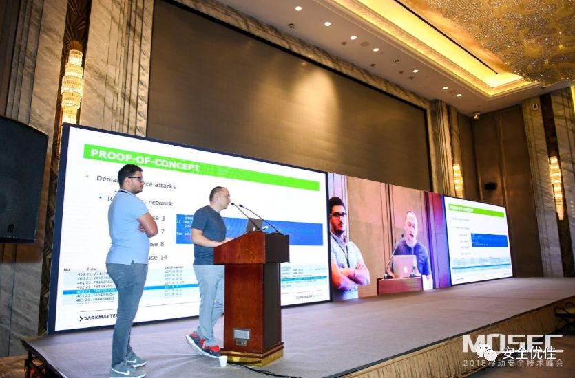来自阿联酋安全公司DarkMatter的两位安全研究人员Arthur Garipov和Chaouki Kasmi分享了议题《粉碎栈:LTE智能手机的安全性》。两位演讲者今天确实带了不少货过来,特意强调不能拍照录像。他们对比了市面上几乎所有openbts类的项目,以及大多数sdr和sim模拟硬件,几乎每种情况他们都说了优劣。最后讲了他们搭建的test bed,为了后面的安全测试,稳定是必须的,不然会浪费很多时间在噪音的分析上。最后他们说了对baseband和enode,LTEstack的fuzzing结果,由于RD的限制,很多成果不方便公开,后续会在其博客中介绍相关技术细节。