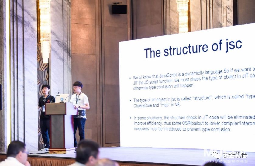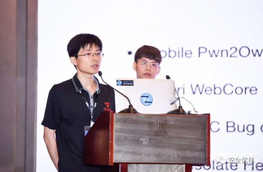来自@360Vulcan 的安全研究员古河、招啟汛分享了议题《手机浏览器中的远程代码执行 - Mobile Pwn2Own实例分享》。该议题主要介绍了在2017年Mobile Pwn2Own比赛中利用的浏览器漏洞,包括Safari DOM漏洞,Safari JIT漏洞等。除了漏洞利用技巧本身,还详细介绍了Safari和Chrome JIT漏洞的挖掘思路及调试方法。此外,此次MOSEC,360Vulcan Team准备了一个彩蛋,在MOSEC现场演示了iOS REMOTE Jailbreak demo,实现了iOS 11.4正式版及iOS 12.0 beta版本的越狱。