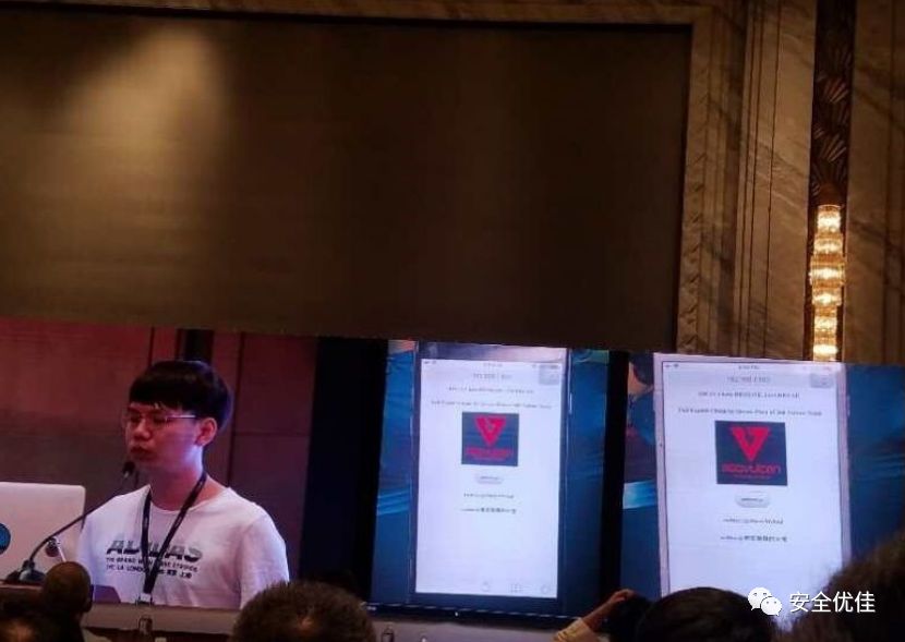 来自360Vulcan的古师父和大宝在MOSEC上分享了他们的最新研究成果,实现了iOS remote JailBreak,并在现场演示了demo。