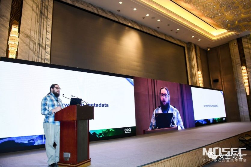 有12年的从业经验的Xerub在MOSEC分享了议题《回顾苹果的iBoot》。iboot的漏洞很少人提及,这种漏洞实在太过宝贵,Xerub从iboot在安全启动的地位说起,dump iboot,分析,找洞。由于攻击面比较少,Xerub更改了HFS+文件系统,加入类似特长路径,引发超长递归,导致iboot发生栈溢出。由于没有aslr dep的保护,很容易构造代码执行。iboot的代码执行就厉害了,类似android的bootloader解锁,可以加载任意内核,获取秘钥等。为了调试iboot,Xerub还特意写了iloader用来模拟执行iboot,据说会在xerub.github.io放出来。