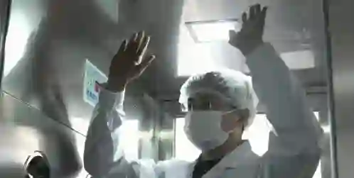 首先,为了保证蔬菜在绝对无菌的环境下生长,每个进入京东工厂的工作人员都要特制防菌服、戴口罩和工作帽,最后还要全身消一次毒才能进去。