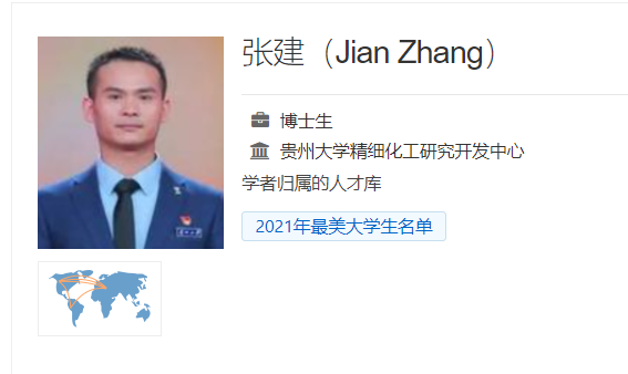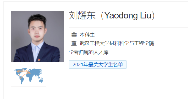 每一位大学生的个人链接中还有更为详细的学术信息,包括视觉性呈现的学术生涯迁徙图、网络关系、研究兴趣、作者统计四大模块以及文字性呈现的基本信息、学术成果、代表成果解析、人才动态及专家情报五大模块,共计九大个人学术生涯解读模块。