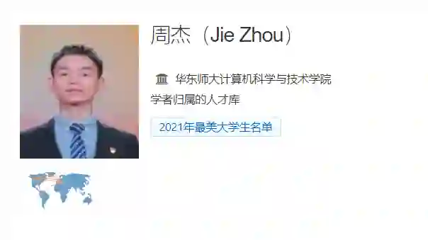 华东师范大学 2016 级博士生周杰,曾获“上海市大学生年度人物”荣誉、国家奖学金、校长奖学金。迄今,他在顶级期刊(会议)上发表论文 20 余篇,7 次参与国内外知名大数据挖掘比赛四度夺冠。他代表华东师大首次在国际顶级赛事——国际知识发现和数据挖掘竞赛上(KDD CUP)名列前三,还多次在国际顶级会议做口头报告,并担任多个国际顶级期刊、会议审稿人。
