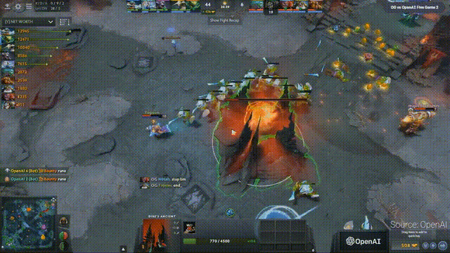 经过近3年的训练,OpenAI Five在2019年以2:0击败了世界冠军团队。