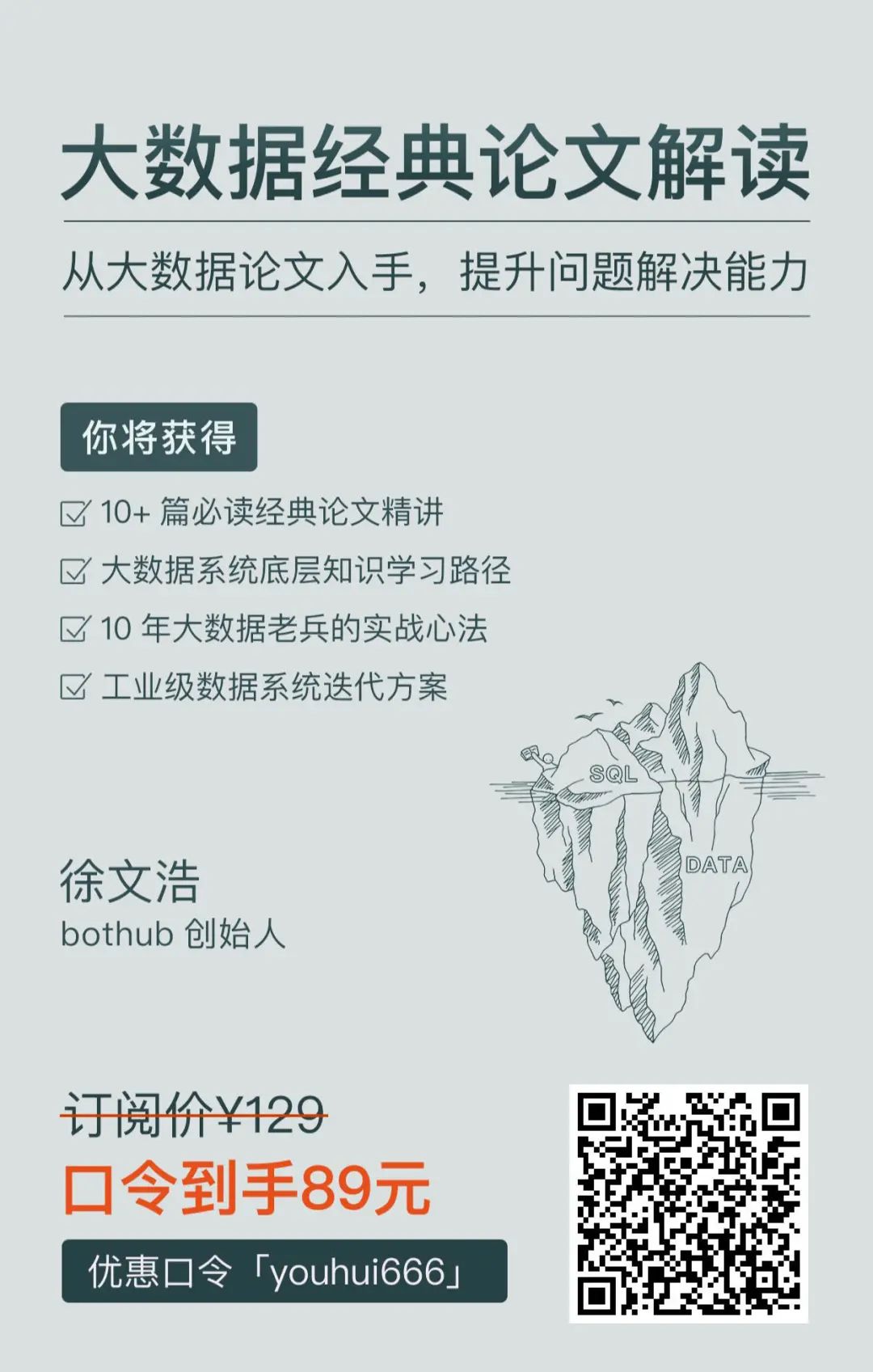 专栏精进了 10 余篇程序员必读的经典论文,给出一条大数据系统底层知识学习路径,还有工业级数据系统迭代方案。你不仅获得一些大数据的知识,更能从系统架构、计算机底层原理层面,获得深入而长久的成长。