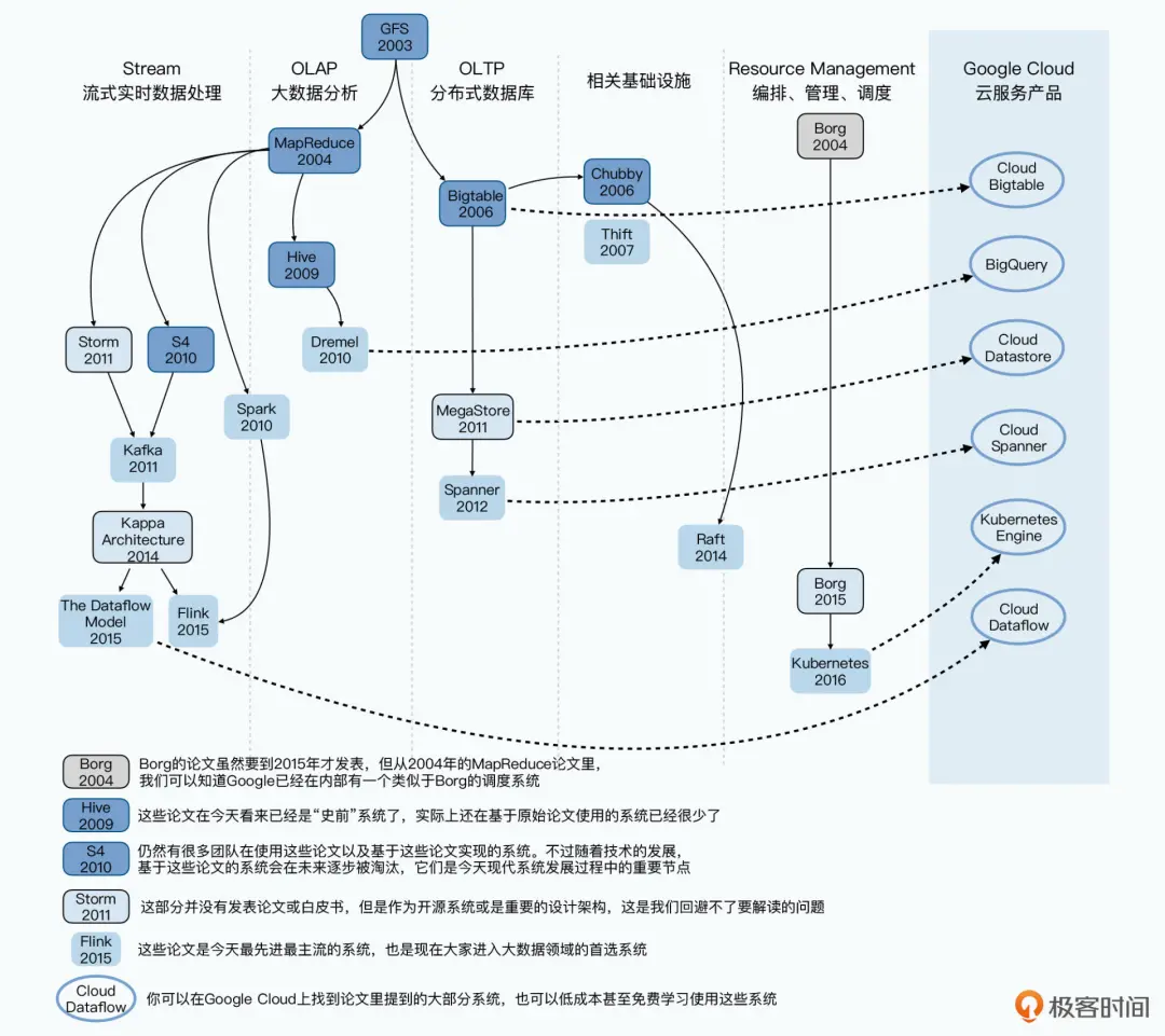 而且,在如今的互联网时代,到处可见「分布式系统」,尤其是「大数据」时代到来之后,各种优秀的分布式系统层出不穷,但它们实现的本质,都源于那几篇经典的研究和论文。